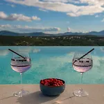 Du kan spise på en terrasse udstyret med en swimmingpool.